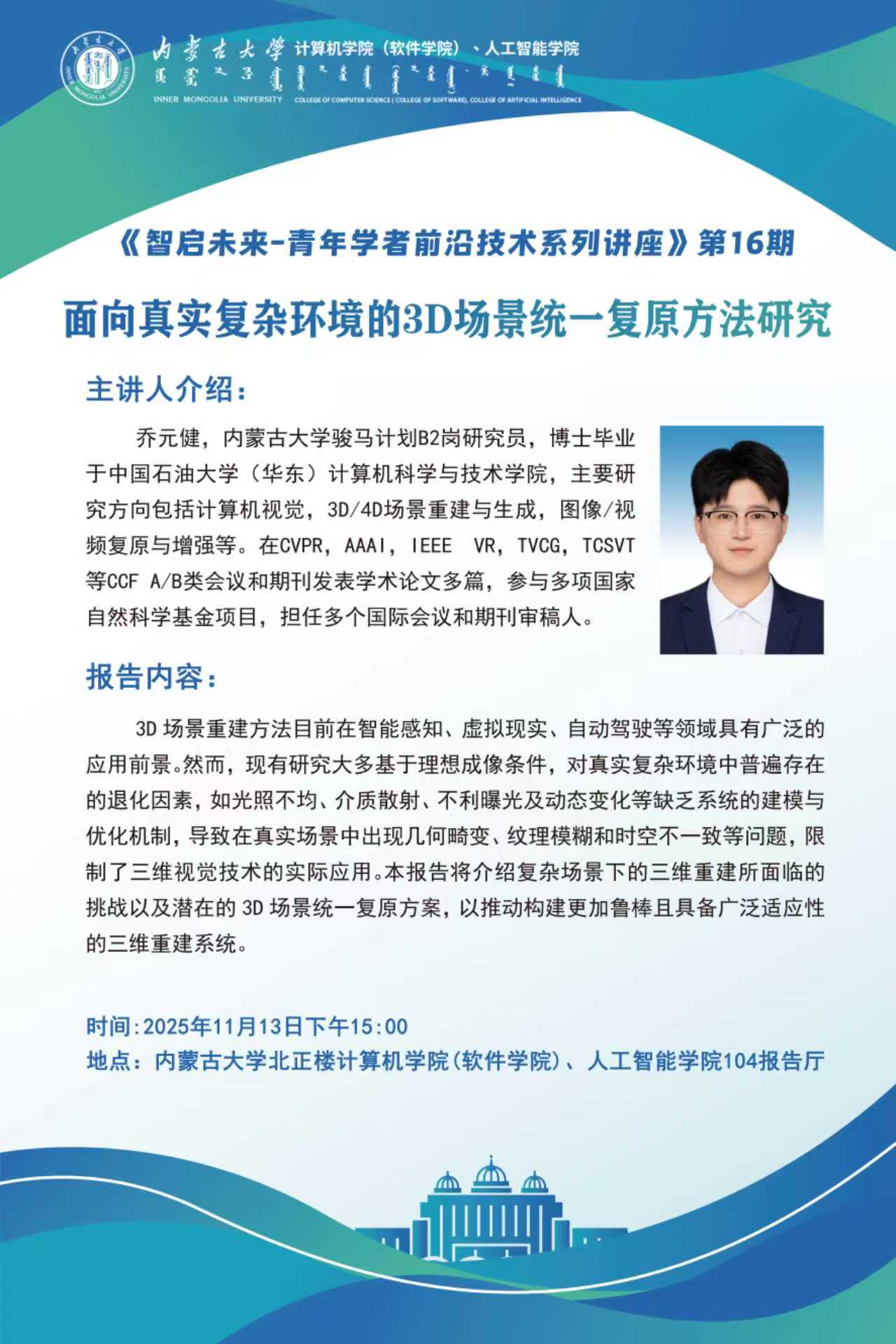学术讲座预告|《智启未来-青年学者前沿技术系列讲座》第16期