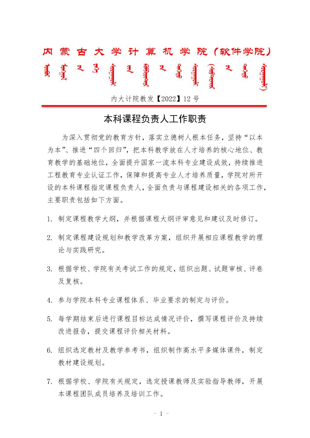 44118太阳成城(软件学院)课程负责人工作职责