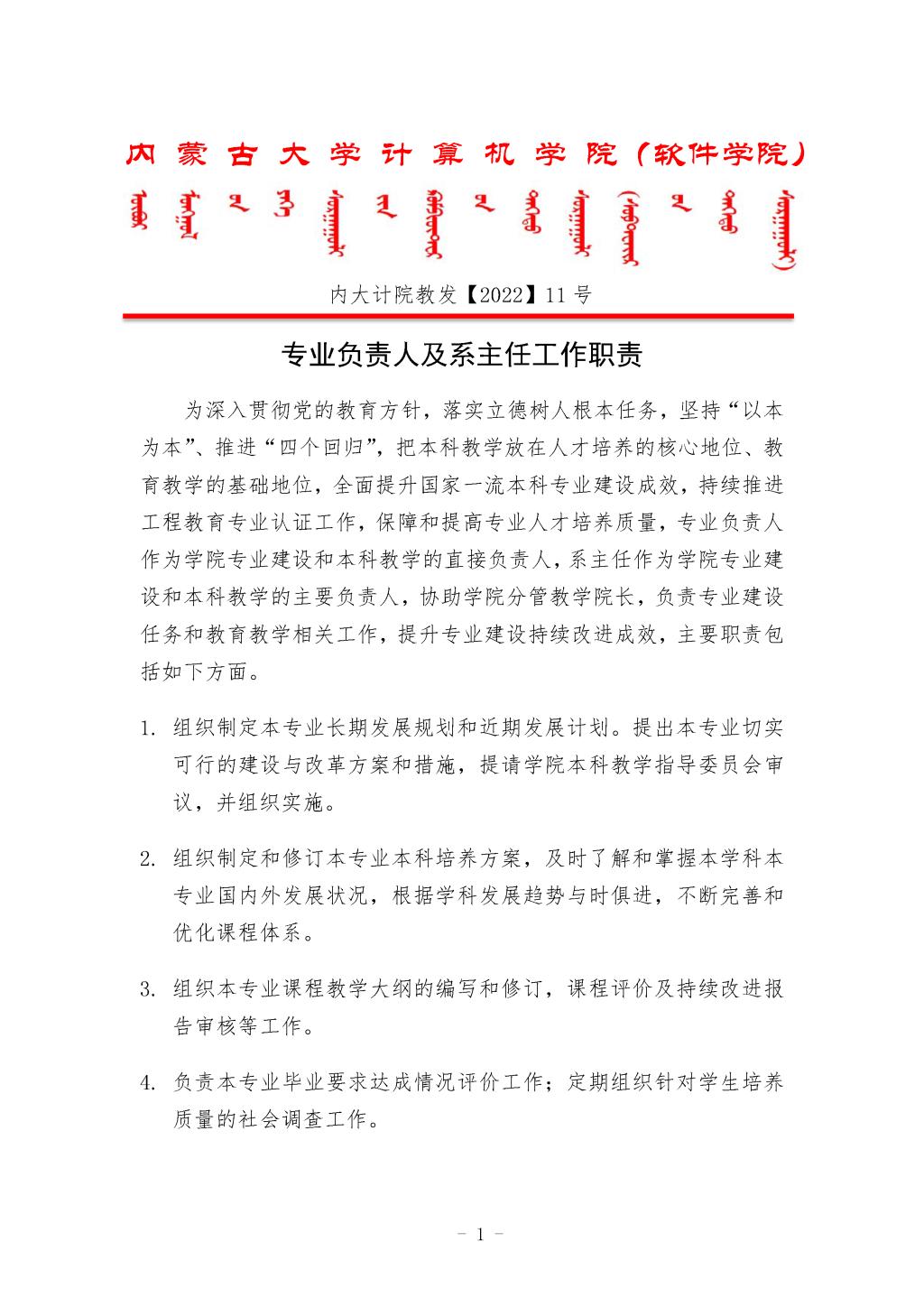 44118太阳成城(软件学院)专业负责人及系主任工作职责