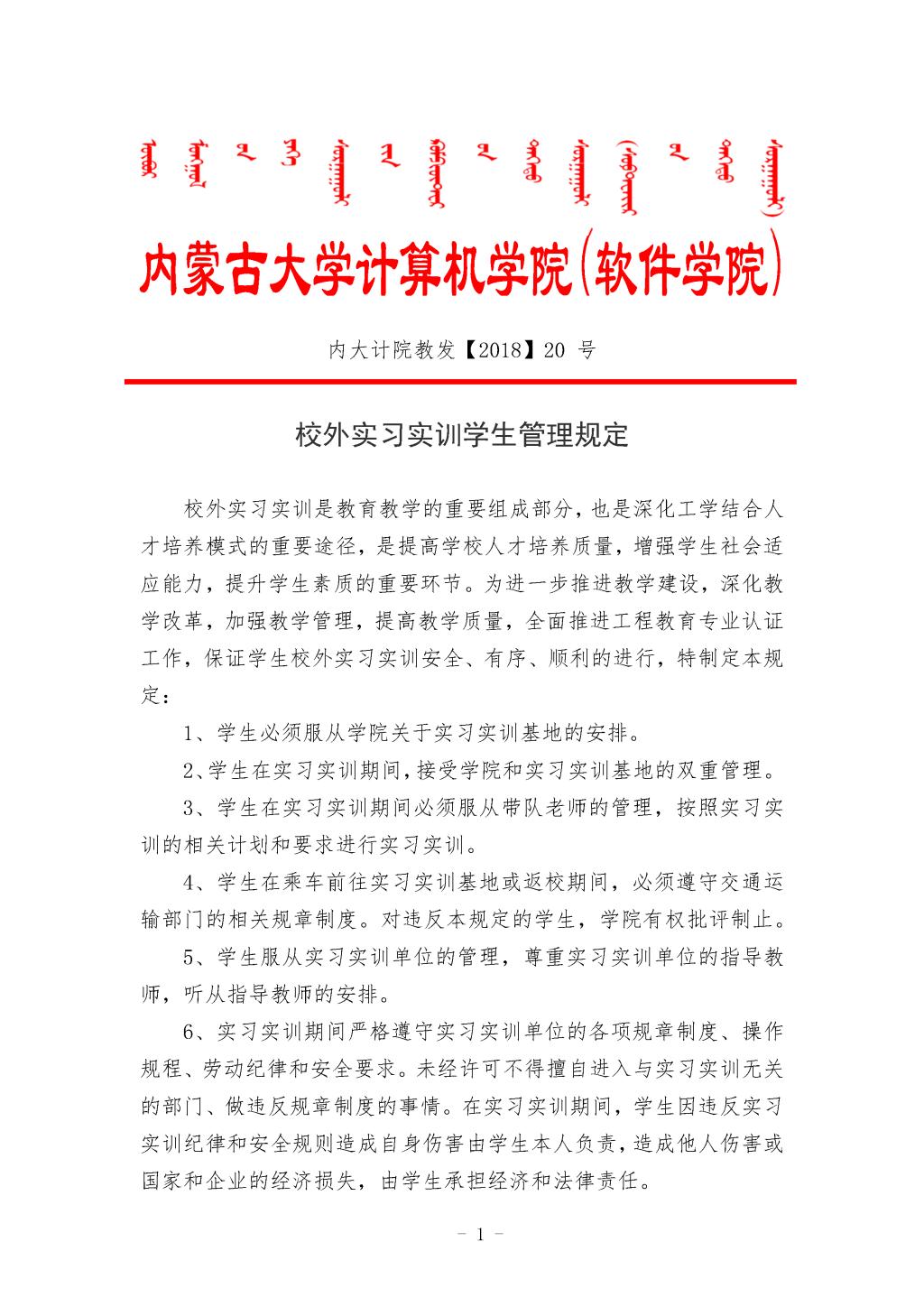 44118太阳成城(软件学院)校外实习实训学生管理规定