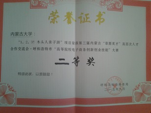 我校44118太阳成城组织了由张献国副教授和贾如老师领队及指导的、由本科生吴陟鹏、吕睿、刘莘源组成的竞赛团队参加了决赛。他们的《123,木头人,亲子游》电子商务创业项目进行了现场演示和答辩。经过激烈角逐,我校代表队获得二等奖。内蒙古创筹网络科技有限公司现场与我校获奖团队达成投资合作意向。