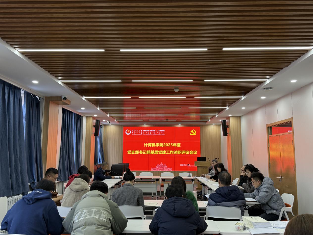2026年1月8日下午,学院党委在104会议室召开2025年度党支部书记抓基层党建工作述职评议会。会议由学院党委书记黄翔主持,学院党委委员、各支部书记、支部委员及党员代表共30人参加会议。
