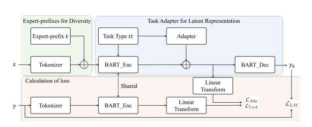 为解决这个问题,我们提出了EpLSA,一个基于专家前缀混合和任务导向潜在空间适应的协同创新模型,用于多样化生成推理。具体来说,我们使用专家前缀混合鼓励模型创建具有不同语义的多个响应,并设计了一个损失函数来解决专家前缀干扰语义的问题。同时,我们设计了一个任务导向的适应块,使生成模型中的预训练编码器能够更有效地适应潜在空间中的预训练解码器,从而进一步提高生成文本的质量。在三种不同类型的生成推理任务上的广泛实验表明,EpLSA在生成输出的质量和多样性方面都超越了现有的基线模型。