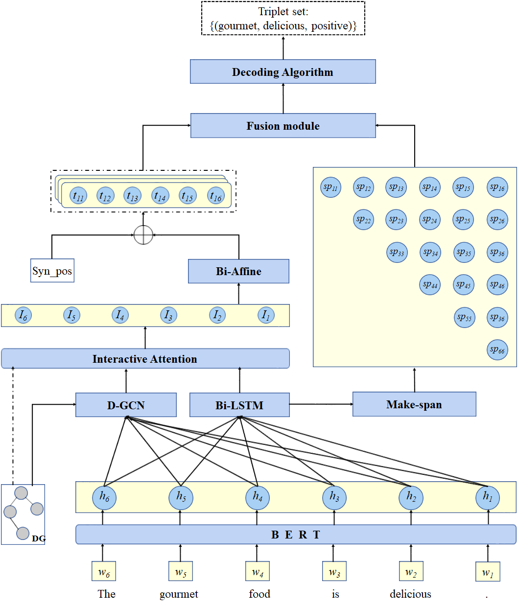 方面情感三元组抽取(ASTE)已经成为情感分析研究的新兴任务。本文提出跨度与表填充方式相结合的Hybrid of Spans and Table-filling (S&T)模型,采用BERT生成初始词嵌入信息,Bi-LSTM和D-GCN分别计算句子的上下文特征和句法特征,并通过Cross attention实现两种特征的充分融合。之后用Biaffine计算词语信息交互并生成词对表结构,基于句法依存树计算语义距离信息从而增强潜在方面项和观点项之间的联系并将整体转化为Span-Table的形式,同时联合简单文本跨度可以增强跨度本身信息特征,提高模型性能。在表解码中,采用三维共八种标签,分别用于识别方面项、观点项和对应情感表达。最后,实验结果表明S&T模型在ASTE任务中有着优秀的表现,验证了模型的有效性。