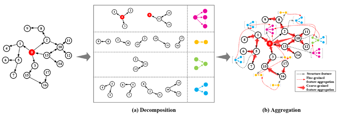 此外,为了提高NA-KGR模型的可扩展性和泛化能力,论文提出一种结合基于路径连通系数的邻域感知随机游走采样方法(如图2所示)和基础子图结构感知采样方法(如图3所示)的预训练模式,使模型在低维和高维知识图谱下均能获得更优的训练效果。