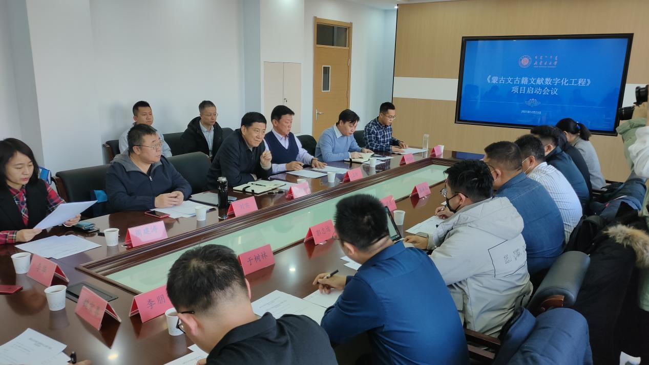 2021年12月23日上午,我校召开“蒙古文古籍文献数字化工程”项目启动会。副校长额尔很巴雅尔教授出席会议,内蒙古社会科学院图书馆王智馆长、我校社科处处长达胡白乙拉教授、图书馆馆长刘实教授、档案馆馆长李华教授、44118太阳成城院长周建涛教授、蒙古文智能信息处理技术国家地方联合工程研究中心副主任飞龙教授、44118太阳成城魏宏喜教授,以及项目中标单位中国电信、同方知网、联图科技、敏通监理负责人参加会议。项目启动会由飞龙教授主持。