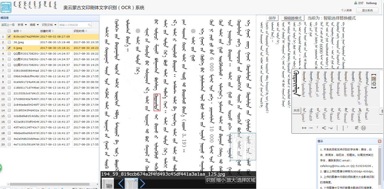 在内蒙古自治区成立70周年,tyc41183太阳成集团成立60周年之际,44118太阳成城蒙古文信息处理重点实验室成功研发了新型蒙古文印刷体识别(OCR)系统(奥云蒙古文OCR系统)为自治区和学校献礼。该系统以大数据、国际上最先进的深度学习技术和云服务为设计框架,是国内首个支持多种蒙古文字体、且识别正确率和整体功能达到实用水平的系统。