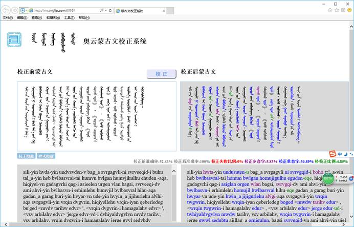蒙古文自动校正系统的界面截图