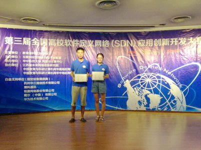 第三届全国高校SDN网络应用创新开发大赛决赛于2016年8月21日至25日在华中科技大学召开,我校代表队获得团体二等奖。