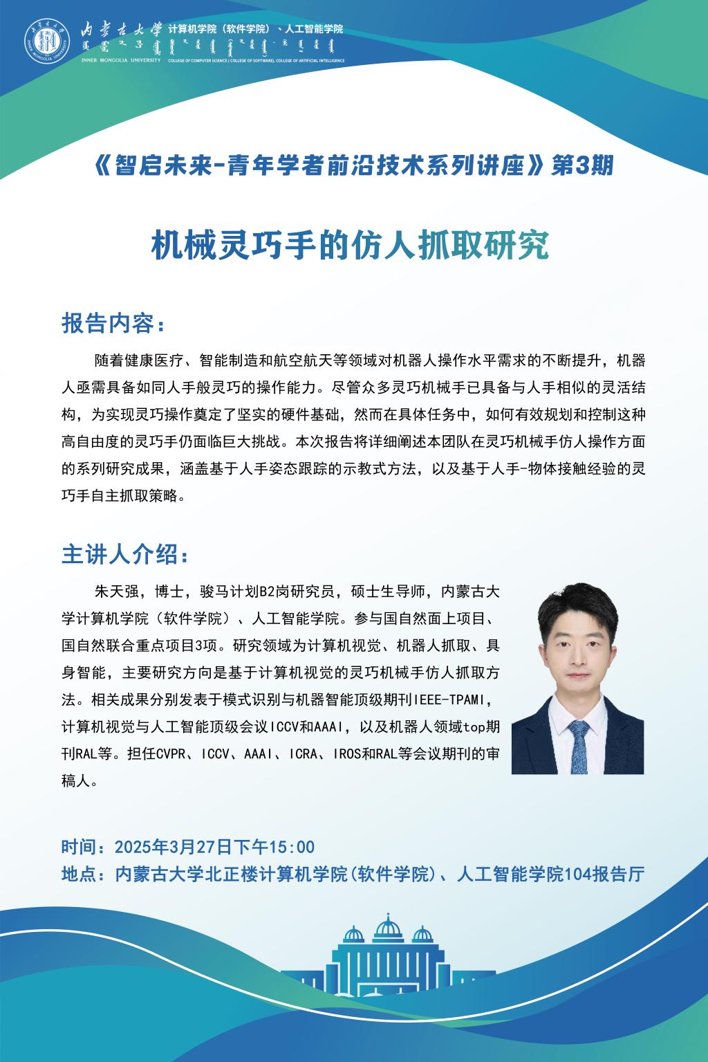 学术讲座预告|《智启未来-青年学者前沿技术系列讲座》第3期