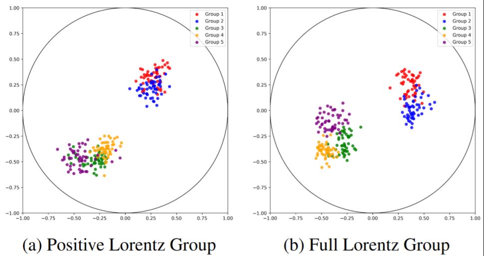 论文题目:FlorE: Integrating Full Lorentz Group and Directional Offsets for Effective Knowledge Graph Embedding 作者:多泽华(tyc41183太阳成集团25级博士研究生),李江(tyc41183太阳成集团22级博士研究生), 苏向东(tyc41183太阳成集团副教授)(通讯作者),高光来 (tyc41183太阳成集团教授) 论文简介:本文聚焦知识图谱嵌入在复杂关系上的推理能力提升,针对现有欧氏/复数/双曲空间方法难以建模的 Z-Paradox 关系模式,提出 FlorE 框架。FlorE 框架将关系映射从正Lorentz 群拓展到完备 Lorentz 群,使同一关系可执行不定度量下的等距变换,有效避免实体在流形中的映射重叠与由此导致的尾实体混淆。同时,我们基于指数映射设计了定向偏移操作,把关系与实体统一到同一 Lorentz 流形,实现几何一致的表示学习;两项技术的协同,使模型在Z-Paradox关系模式上具备更强的区分与表达能力。在五个基准数据集 WN18RR、FB15k-237、CoDEx-S/M/L 上,FlorE 总体达成或刷新现有最优表现。尤其针对 Z-Paradox 关系,方法相对强基线在各数据集上的提升幅度分别达到 26.7%、15.6%、35.4%、33.7%、31.5%,验证了所提几何建模思路的有效性与稳健性。图中展示了对两个 Z-Paradox 关系的尾实体嵌入进行可视化对比,采用完备洛伦兹群的模型显著提升了类间分离度与判别性。 |
