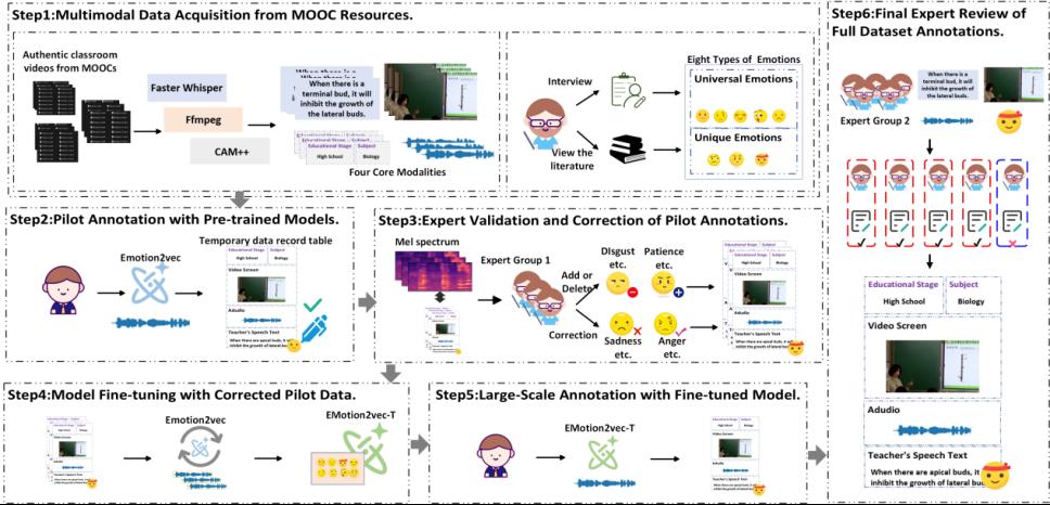论文题目:Advancing Multimodal Teacher Sentiment Analysis: The Large-Scale T-MED Dataset & The Effective AAM-TSA Model 作者:段智议(tyc41183太阳成集团研究员),王祥任(tyc41183太阳成集团2024级硕士研究生),袁宏宇(tyc41183太阳成集团2025级博士研究生),邢千里(吉林大学副教授) 论文简介:教师的情绪状态在教育场景中至关重要,深刻影响教学效果、学生参与度和学习成绩。然而,由于教师情绪的演绎性,现有研究往往无法准确捕捉教师情绪,忽视了教学信息对情绪表达的关键影响。本研究通过相应地构建数据集和模型来系统地研究教师情绪分析。本研究构建了第一个大规模教师多模态情感分析数据集T-MED。为了确保标记的准确性和效率,本研究采用了人机协作标记流程。T-MED 数据集包含来自 250 个真实教室的 14,938 个教师情感数据实例,涵盖从 K-12 到高等教育的 11 个学科,集成了多模态文本、音频、视频和教学信息。此外,本研究提出了一种新颖的基于非对称注意力的多模态教师情感分析模型AAM-TSA。AAM-TSA引入了非对称注意力机制和分层门控单元,以实现差异化的跨模态特征融合和精确的情感分类。实验结果表明,AAM-TSA 在 T-MED 数据集上的准确性和可解释性方面显著优于现有的最先进方法。 |