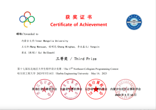 2023年5月14日,由黑龙江省计算机学会、吉林省计算机学会、辽宁省计算机学会和内蒙古自治区计算机学会共同主办,哈尔滨工程大学承办的“第十七届东北地区大学生程序设计竞赛”在哈尔滨工程大学举行。全国大学生程序设计竞赛旨在激励当代大学生运用计算机编程技术和技能来解决实际问题,激发学生对学习算法和程序设计的兴趣,培养学生团队合作意识、创新能力和挑战精神。