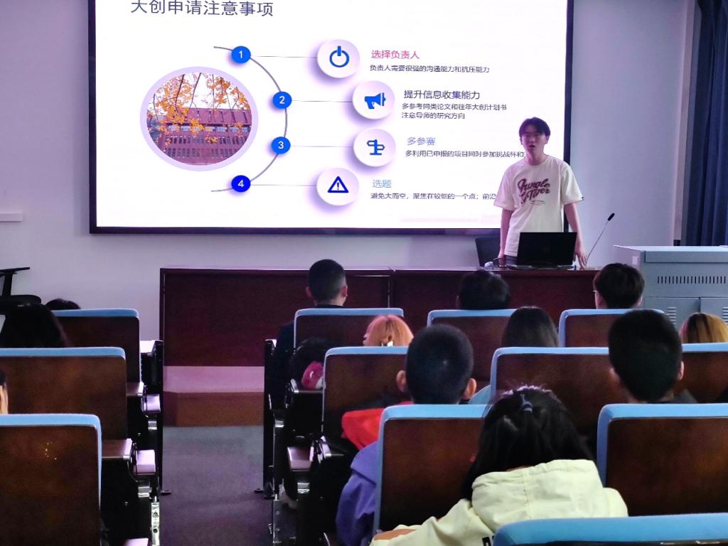 支部成员2019级叶东欣同学就“大创、竞赛、毕业设计涉及到的相关技术和建议”进行了分享,重点对同学们关心的各类竞赛以及大学生创新创业的信息搜集、能力储备、参赛技巧等方面交流了经验。