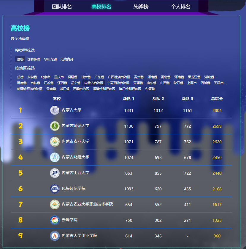 经过3小时的激烈角逐,我校夺得了内蒙古自治区高校冠军奖;一队、二队和三队分别获得内蒙古自治区“珠峰争鼎”组(最高级别)团队冠军奖、一等奖和二等奖;李鑫豪、李纪元获得全国个人三等奖。