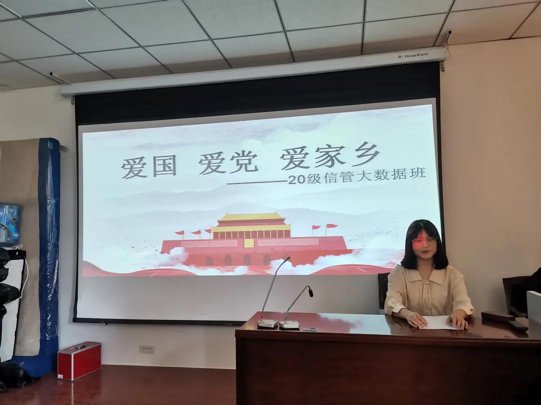 活动以石丽红同学的爱国演讲开始。活动中,信管大数据班同学们进行的小游戏猜字谜更是让气氛快速上升到了高潮,其后阿罗木斯同学进行演讲!最后本次活动团日活动以石丽红同学的总结为结束。