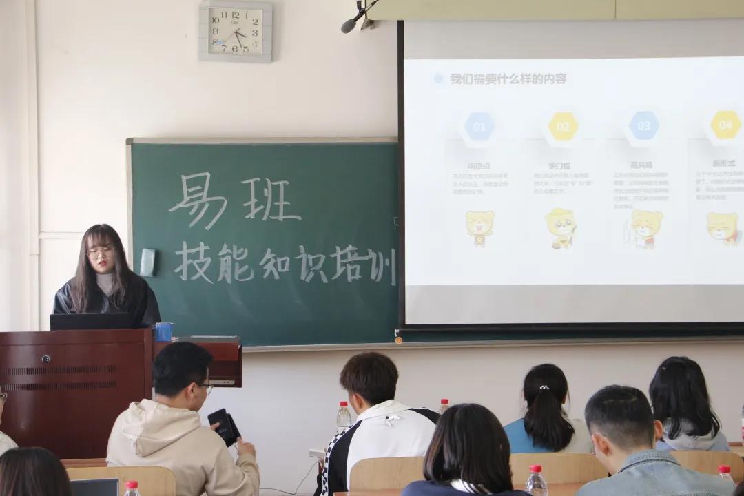 本次学生骨干技能培训由校易班的五位部长主讲。会议开始,校易班工作站产品运营部部长分享了易班后台答题板块和网薪商城的相关信息,并讲解了后台运营管理方面的知识。随后,校易班新闻传媒部三位部长为大家分享了易班原创内容建设指南以及推文的创作要诀;对如何在易班平台发布推文、客户端首页资讯两大方面展开讲解;介绍了轻问卷的创作方式与轻应用快搭平台的使用。最后结合实践中遇到的问题,大家一同进行了探讨交流。