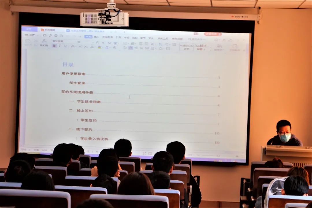 随后,学院助管刘泽宇对毕业生生源地信息审核以及就业三方协议的签署等操作进行了详细的讲解和答疑,并且强调了毕业生相关手续的办理流程,他提醒同学们要妥善保管个人材料,以便完成后续手续的办理。