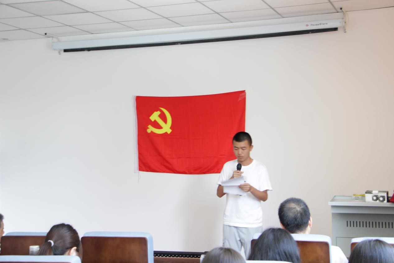 致辞完毕,全体预备党员面向党旗,进行了庄严的宣誓。接着分别由研究生预备党员代表李计、本科生预备党员代表冯琪发言,他们代表全体预备党员向党组织做出郑重承诺:保证在今后的学习生活与工作中爱党、敬党,不断提高自身修养,做一名合格的共产党员。