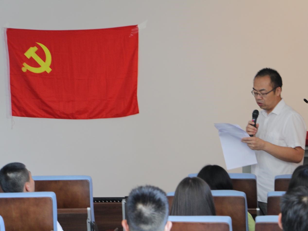 首先,张献国老师宣读预备党员名单并致辞。他强调入党誓词是每一名共产党员入党时初心的真实写照和庄严许下的铮铮诺言,加入中国共产党,就要有对党的事业、对共产主义理想贡献自己一切的决心。