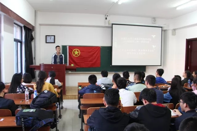 团课上,团支书首先为大家传达了习近平总书记同各界青年代表座谈时的重要讲话内容,并介绍了支部教育实践的具体工作,要求支部全体团员认真学习党的十九大精神,积极参与支部关于“一学一做”的各项专题活动。随后,支部全体团员佩戴团徽,重温宣誓词,并对共青团的发展历程进一步展开了学习讨论。最后,部分支部团员代表积极发言,面向团旗表达了自己的决心与敬意。
