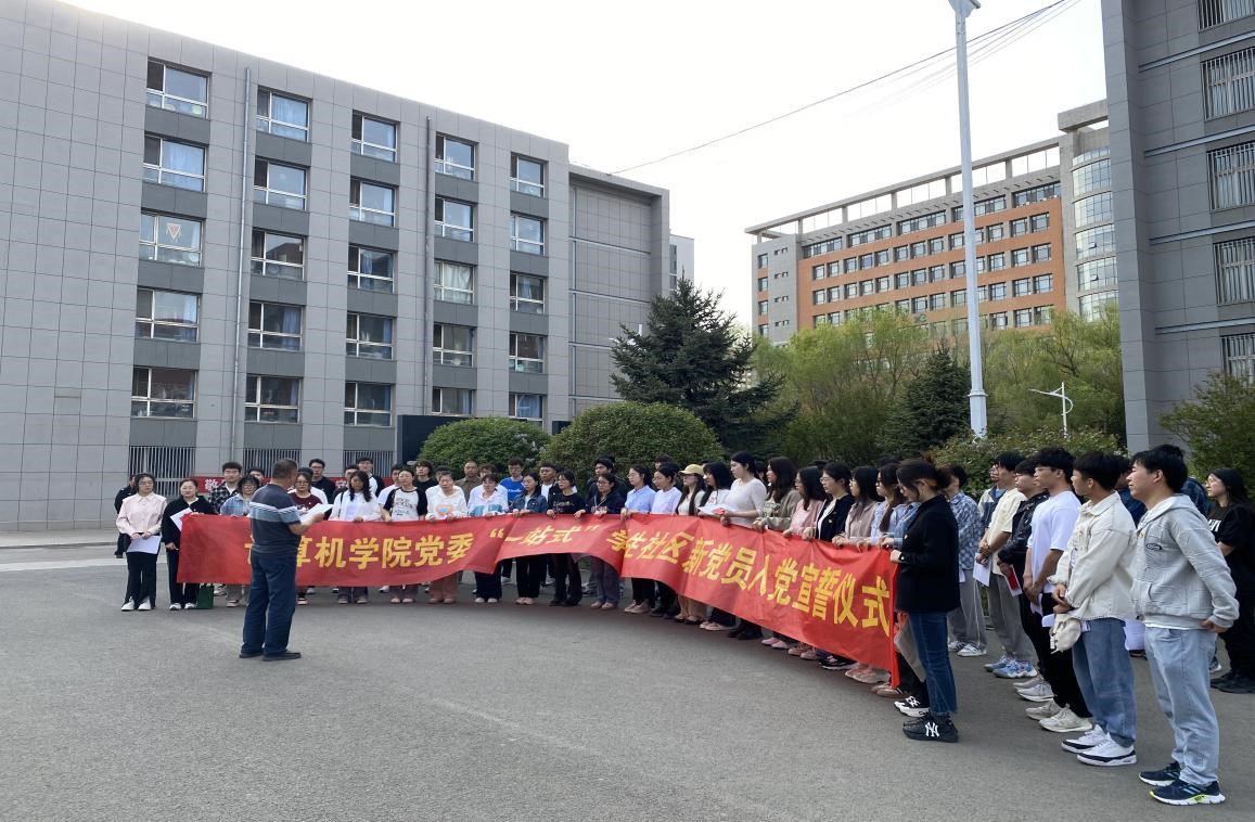 为加强预备党员的党性教育,教育党员铭记入党誓词,牢记党的宗旨,增强党员意识,发挥党员的先锋模范作用。学院党委于4月18日下午在赛罕校区东院学生公寓2号楼前举行新党员入党宣誓仪式。学院党委书记黄翔、学院副院长孙涛、学院党委组织员张献国、退休教师党员王玉清及65名新入党的预备党员参加,入党宣誓仪式由学院副院长赵俊峰主持。