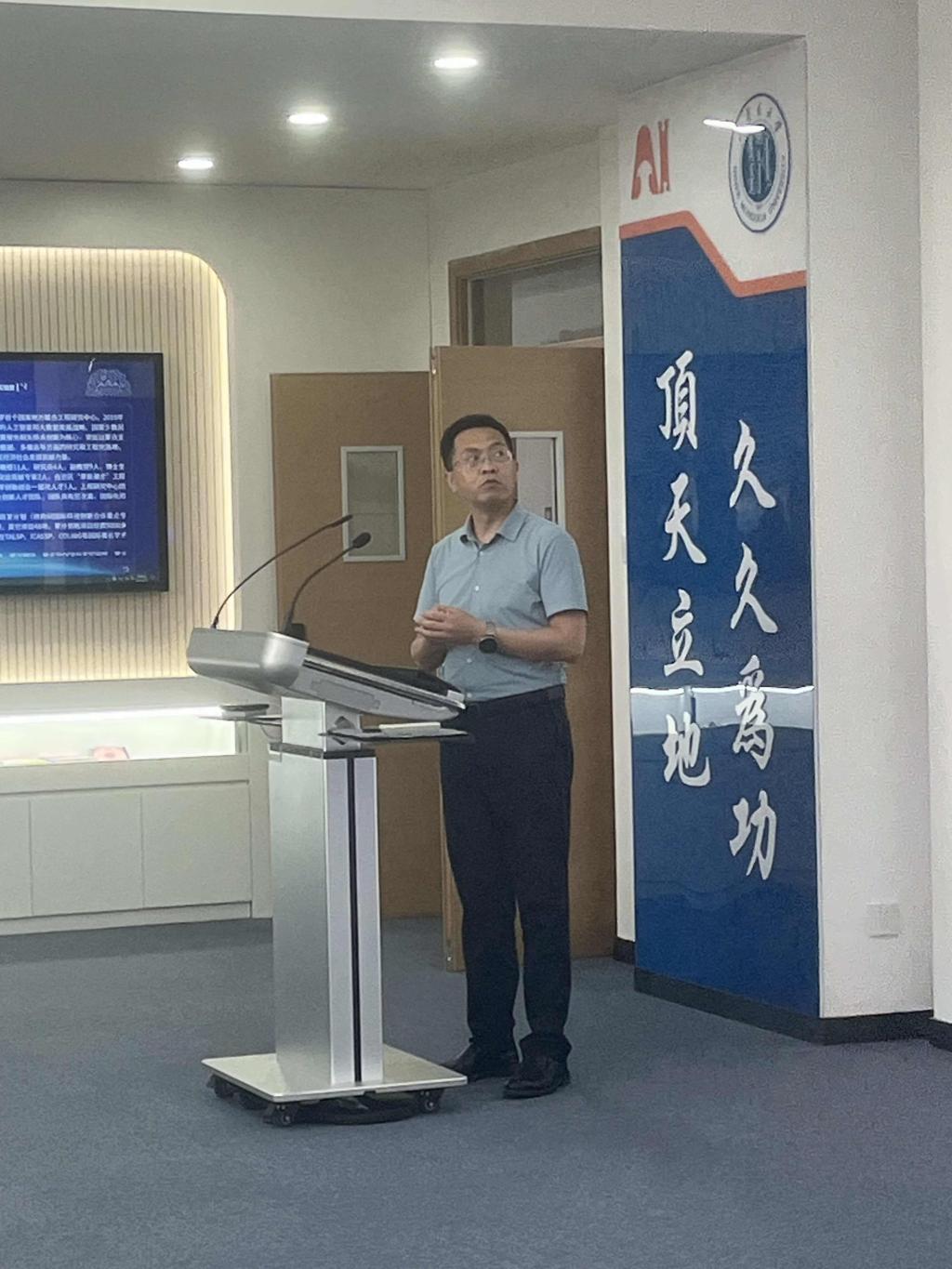 蒙古文智能信息处理技术国家地方联合工程研究中心副主任、党支部书记飞龙教授为同学们作了题为“攻坚克难攀高峰、服务社会报党恩”专题党课,从立德树人守初心、教书育人勤耕耘、攻坚克难攀高峰、服务社会报党恩等四个方面讲述个人的成长成才之路和在科研领域取得的突出成绩,并与同学们进行了交流互动。