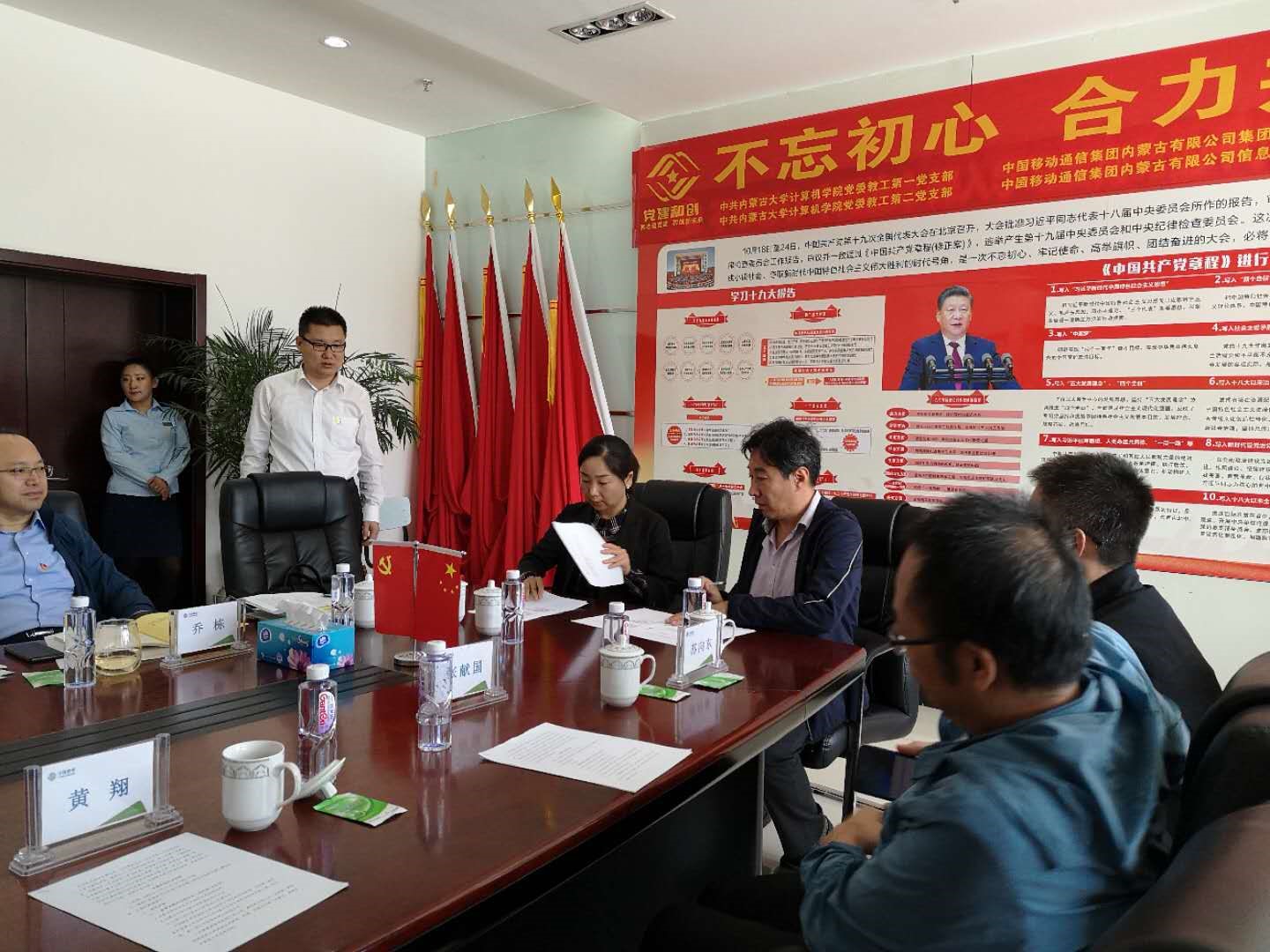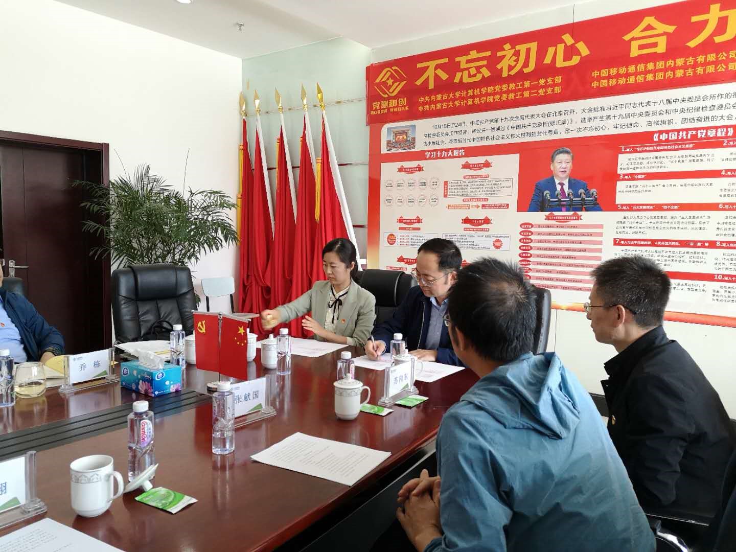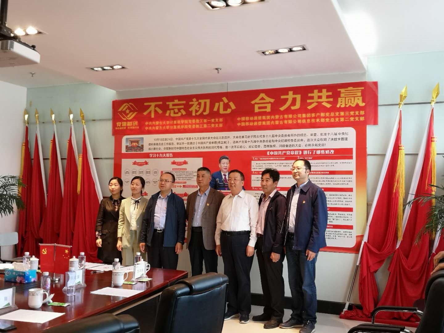 为深入学习贯彻党的十九大精神和党的十九届二中、三中、四中全会精神,坚持以习近平新时代中国特色社会主义思想为指导,落实新时代党的建设总要求,充分发挥基层党支部的战斗堡垒作用,创新党建工作载体,激发党员的活力,学院党委教工第一、第二党支部与中国移动通信集团内蒙古有限公司信息技术部第二党支部、集团客户部第三党支部经过积极沟通交流,一致认为双方联合开展“党建和创”活动能充分挖掘、发挥各自在党建、人才、教育、科技、文化、信息等不同方面的资源优势,共同构建“资源共享、优势互补、互相促进、共同提高”的党建工作新格局,有利于提升党建工作水平,有利于促进事业发展,有利于促进校企深度合作。